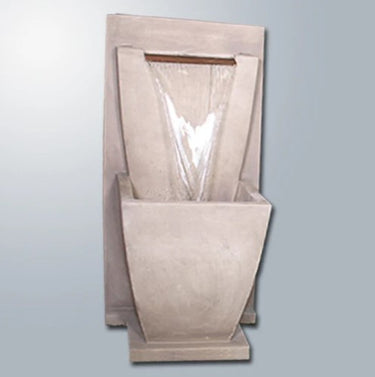 The Arbois Wall Fountain for Spout is a striking, tall wall-mounted fountain that adds elegance and charm to any outdoor space. Expertly handcrafted in the USA from durable fiber-reinforced cast stone concrete, this fountain features a smooth water flow and a peaceful waterfall sound. Available in a wide selection of premium finishes, the Arbois Fountain is designed for customization with your choice of decorative spouts and optional LED lighting (sold separately). With no plumbing required and an included recirculating pump, this custom wall fountain brings beauty and relaxation with easy installation and lasting quality.