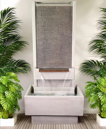 The Deco Wall Fountain is a stunning addition to any outdoor space, featuring a sleek rectangular frame with elegant curves at the center. Designed to enhance garden walls with its artistic appeal, this fountain creates a soothing ambiance with the gentle sound of flowing water, transforming ordinary walls into captivating focal points.